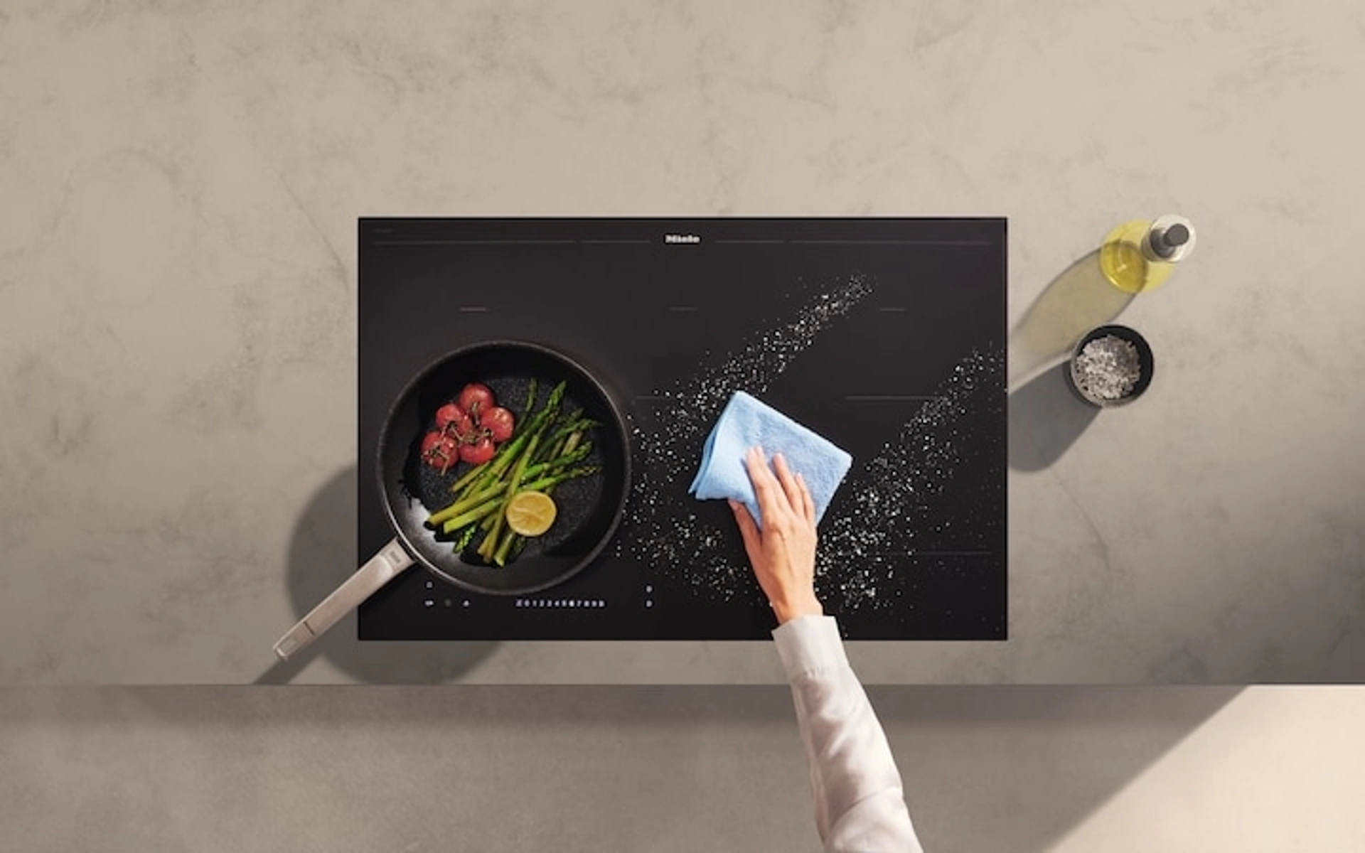 Una ricca gamma di Elettrodomestici del noto e rinomato brand Miele ti sta aspettando per ultimare ottimamente i tuoi interni. Scopri di più sul modello di Piano Cottura a induzione KM 7576 FL MattFinish di Miele nella fotografia: materiali sicuri e resistenti, forme decise e contenuto tecnologico lo rendono la soluzione ottimale per la tua cucina.