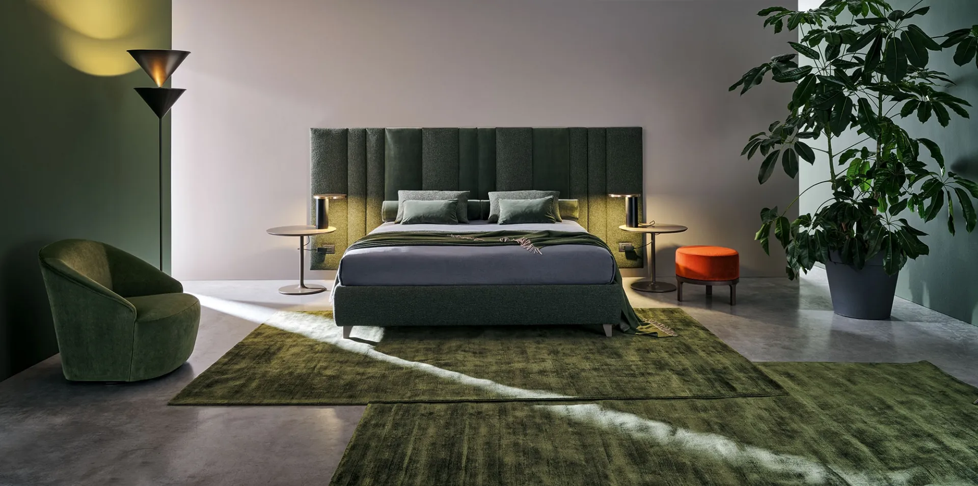 Il Letto matrimoniale Boiserie Set di Twils ricrea uno spazio accogliente e confortevole in ogni zona notte, assicurandoti il relax totale e un design unico. Durante la scelta di un buon modello di letto, valuta con cura le sue misure, i materiali, la forma e il suo stile rispetto al resto degli arredi. I Letti matrimoniali imbottiti del brand, leader nella realizzazione di Arredamento Casa per la zona notte, sono progettati per essere abbinati a mobili ed elementi accessori di ogni genere, come armadi e comò, abat jour e piantane. Scegli tonalità e finiture e realizza il tuo concept d’arredo nella zona notte, progettandola proprio come l'hai sempre immaginata. Se vuoi una soluzione in tessuto, il modello presente in foto è contraddistinto da materiali pregiati e linee decise, che invitano a goderti un sonno completo e rigenerante.